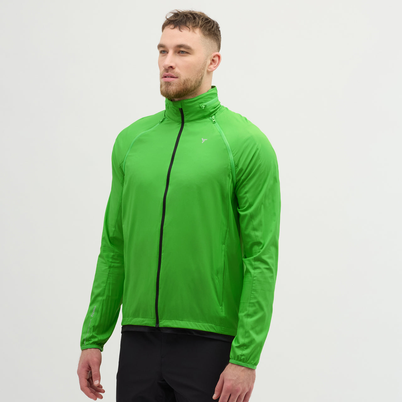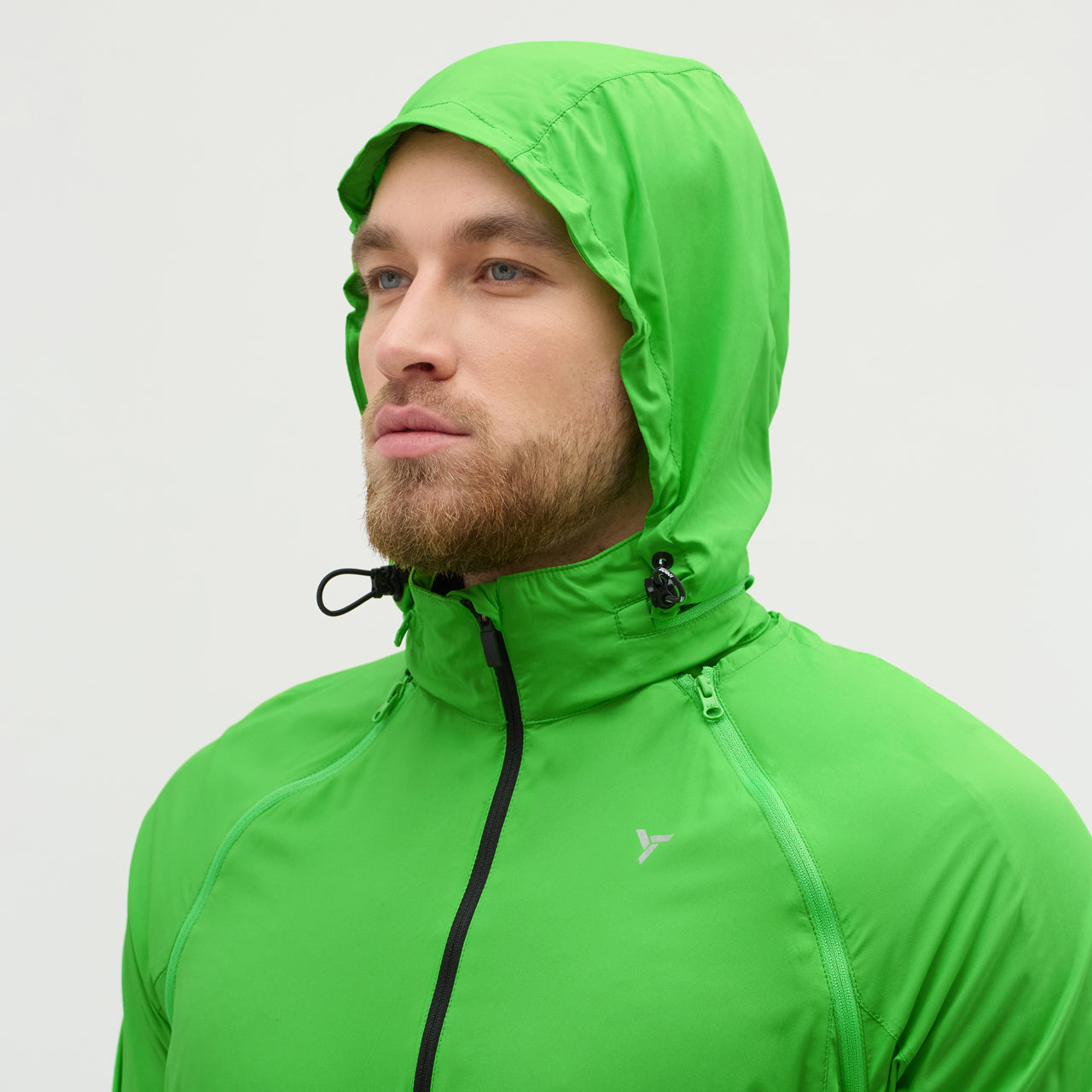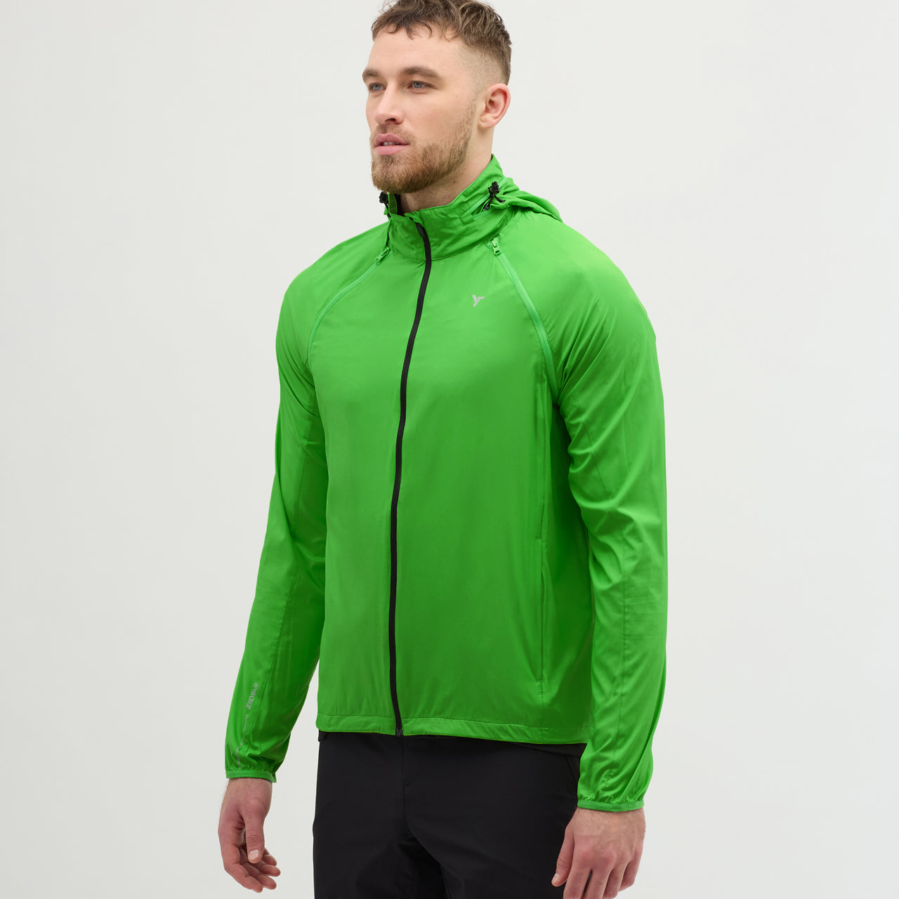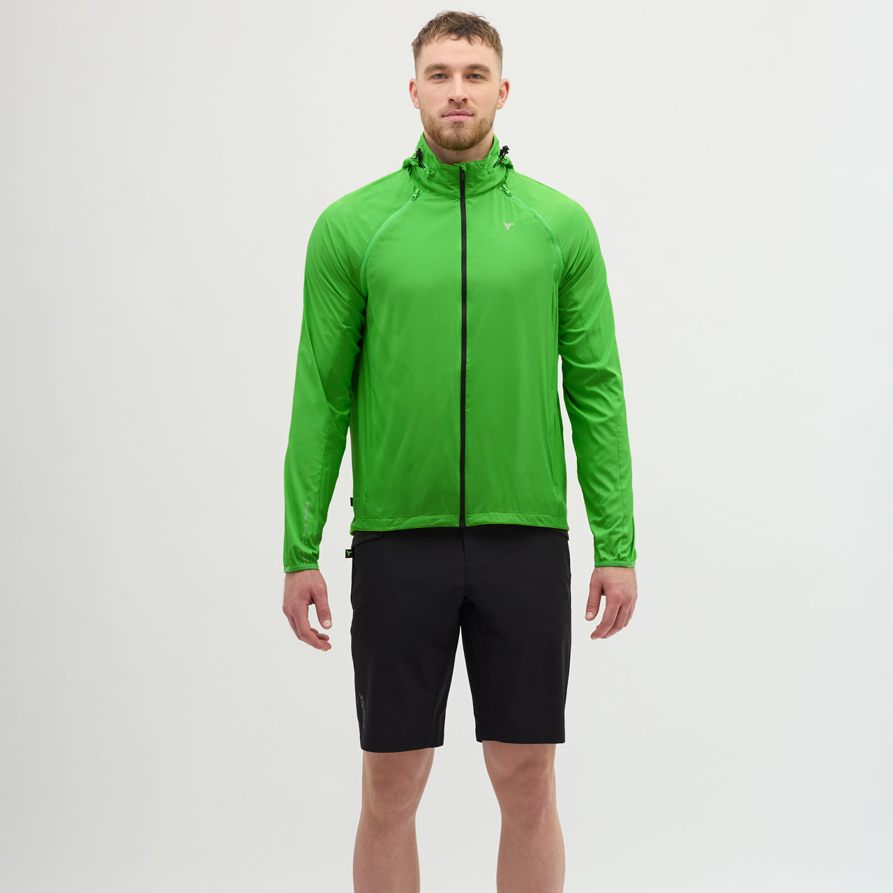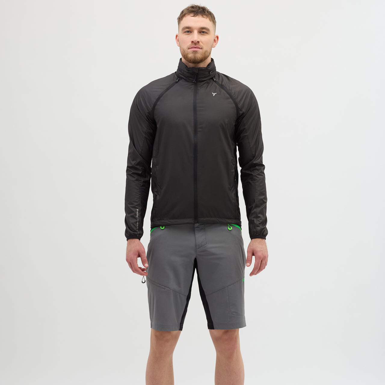 Men's windproof jacket made of Windbreaker material, packable in a small bag. By unbuttoning the sleeves, it turns into a vest, the hood can be folded into the collar. It has three zipped pockets, a drawcord at the bottom edge and reflexes.