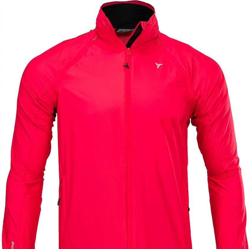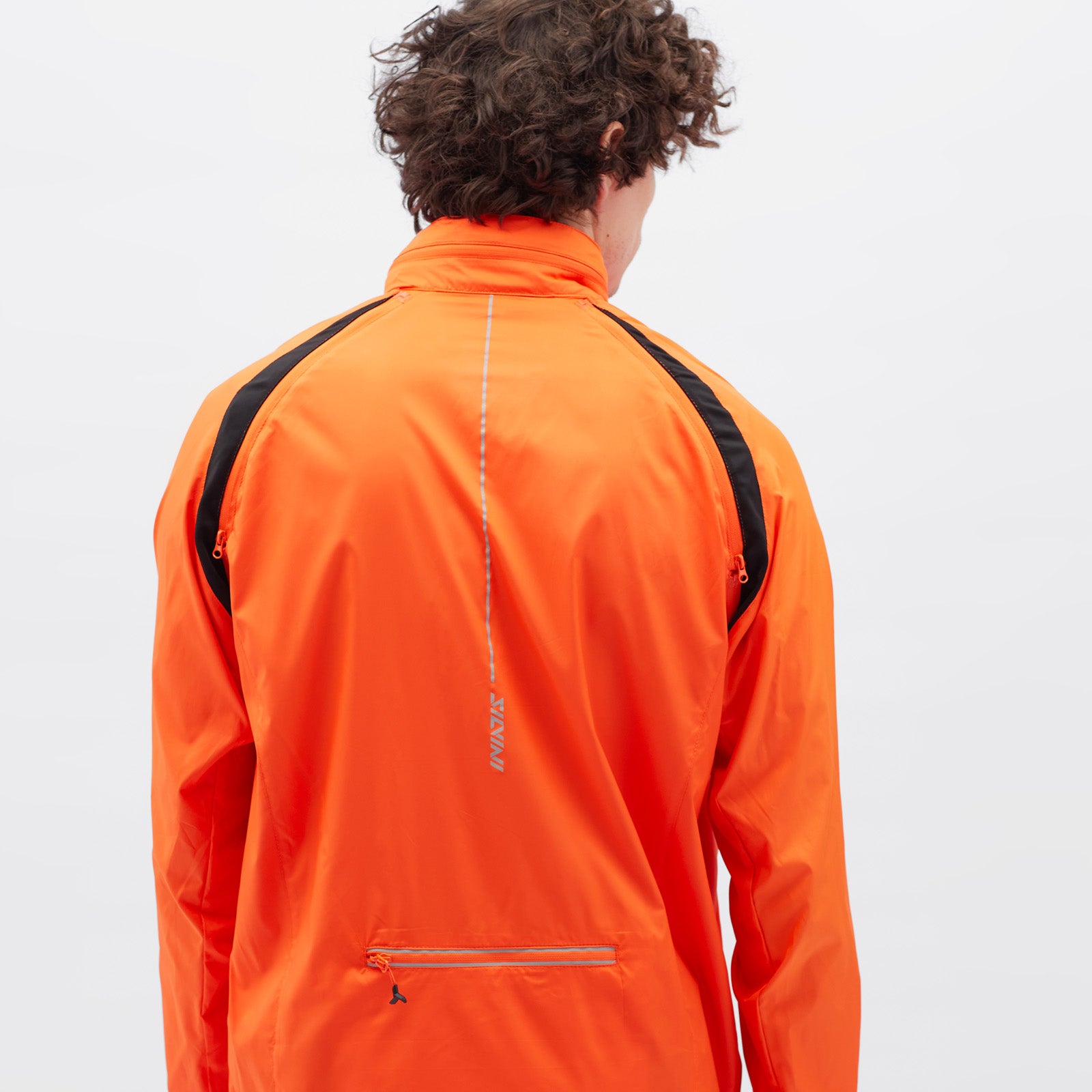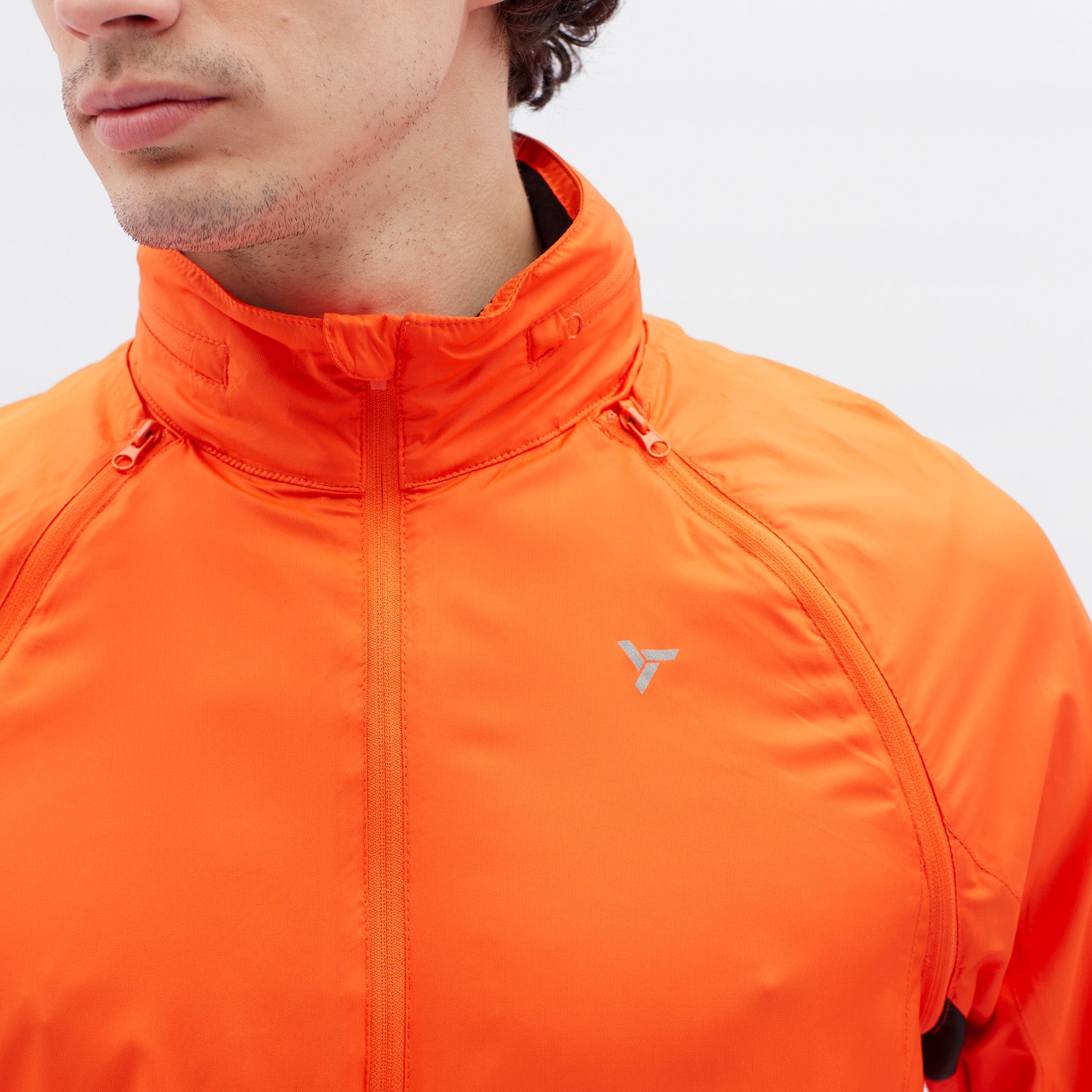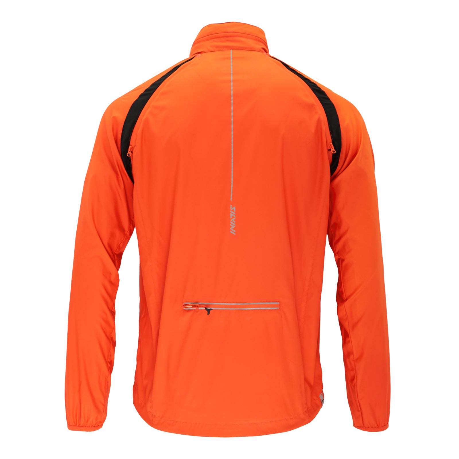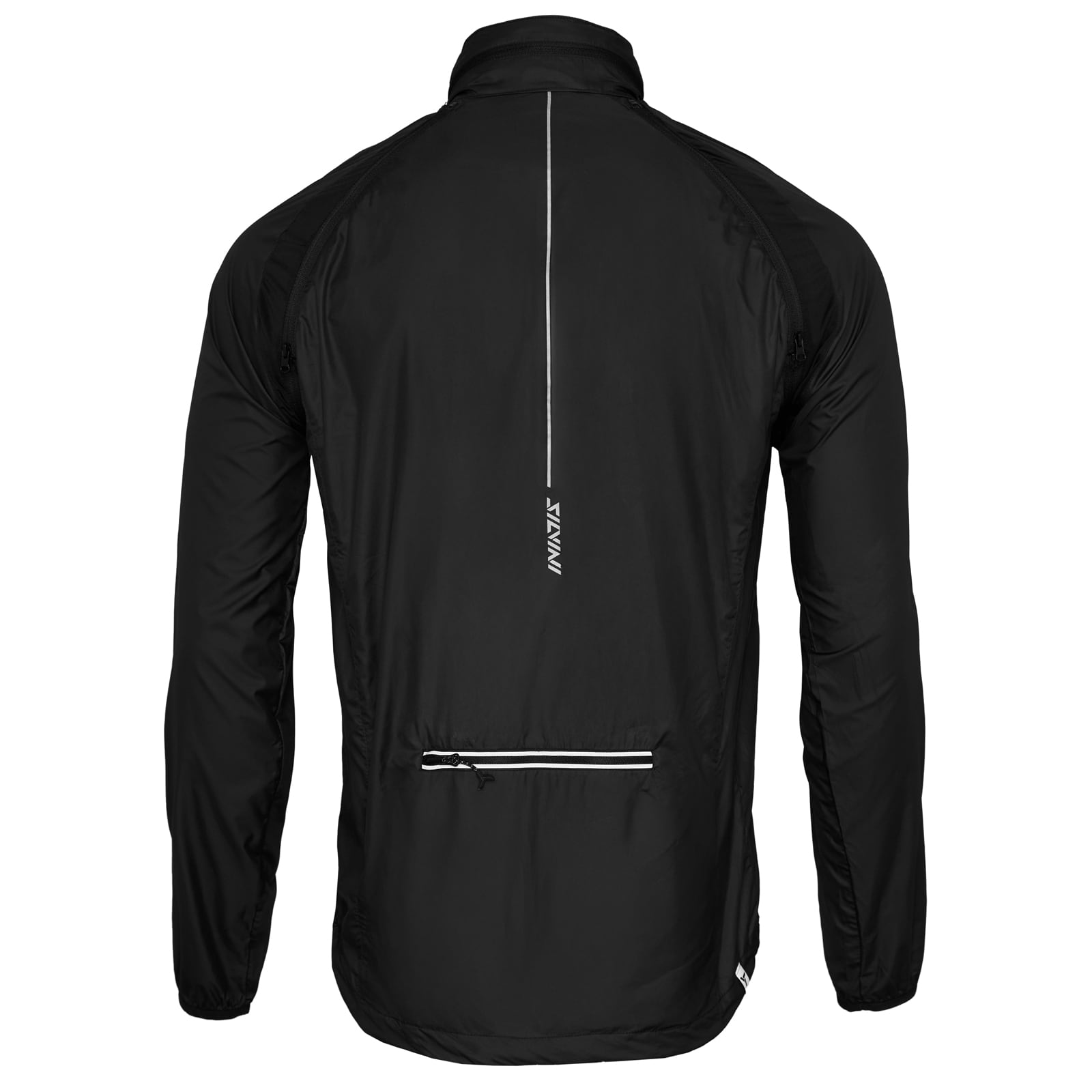 Men's windproof jacket made of Windbreaker material, packable in a small bag. By unbuttoning the sleeves, it turns into a vest, the hood can be folded into the collar. It has three zipped pockets, a drawcord at the bottom edge and reflexes.