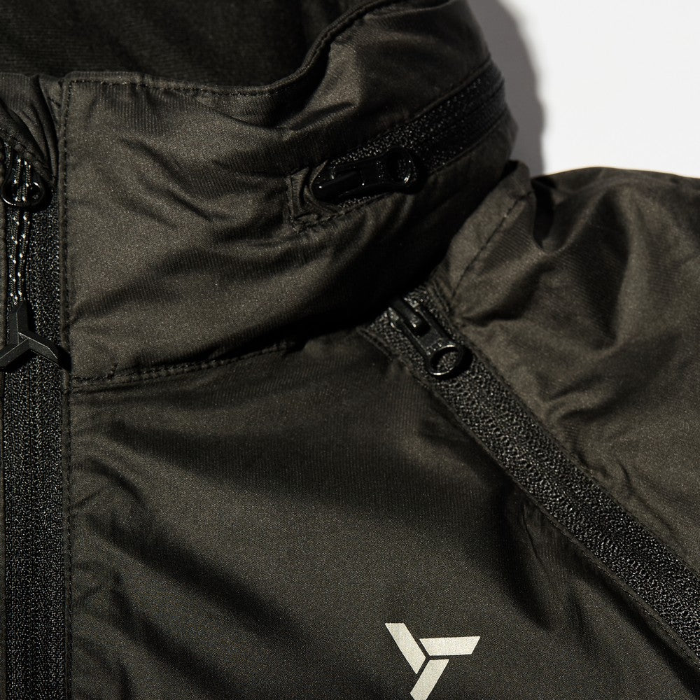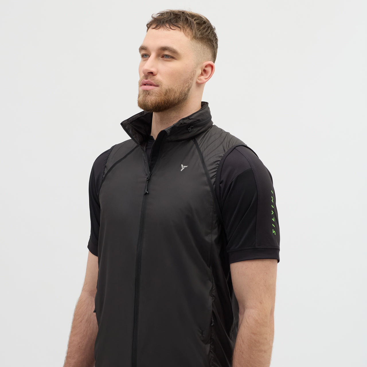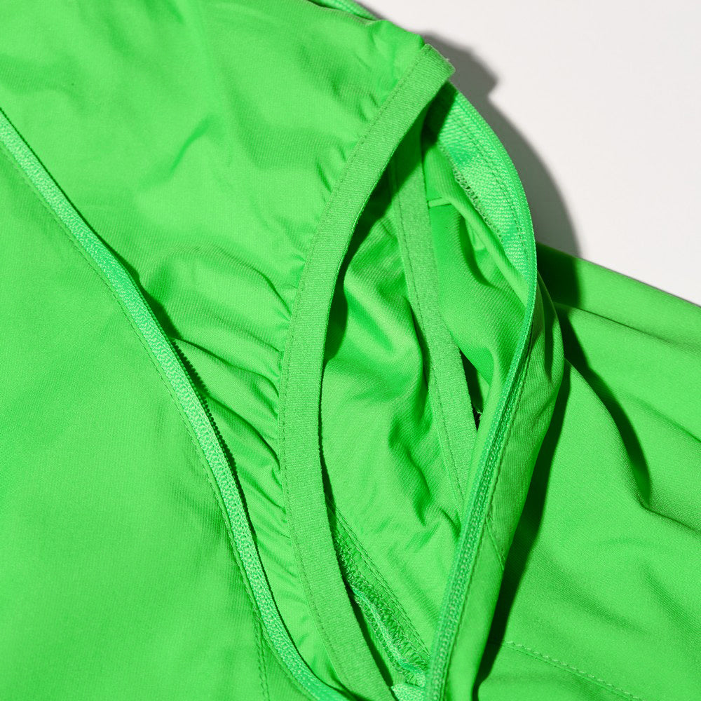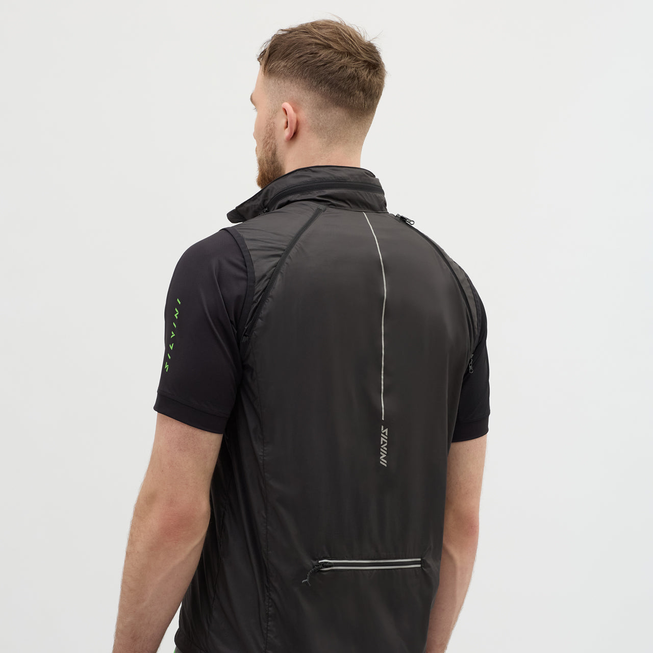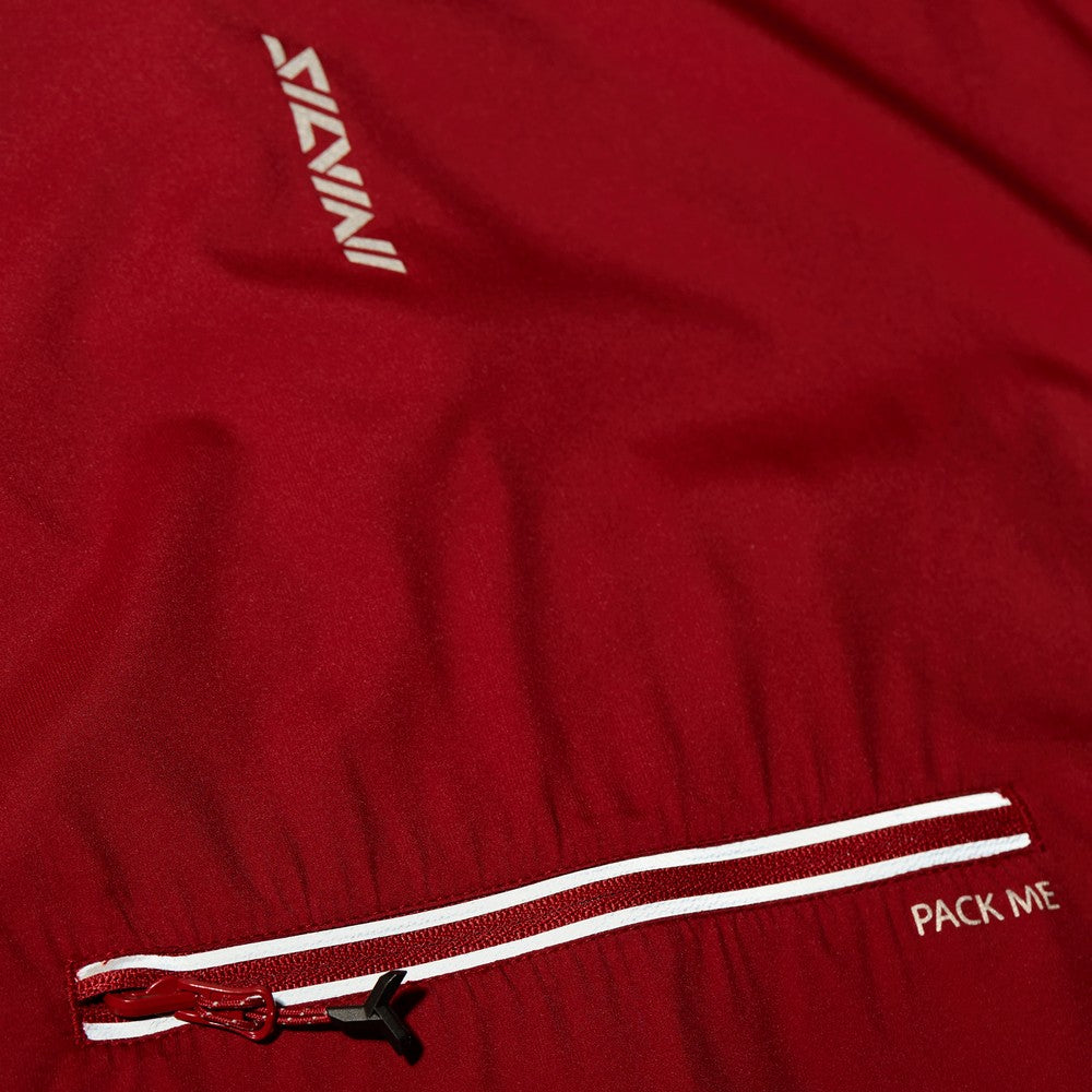 Men's windproof jacket made of Windbreaker material, packable in a small bag. By unbuttoning the sleeves, it turns into a vest, the hood can be folded into the collar. It has three zipped pockets, a drawcord at the bottom edge and reflexes.