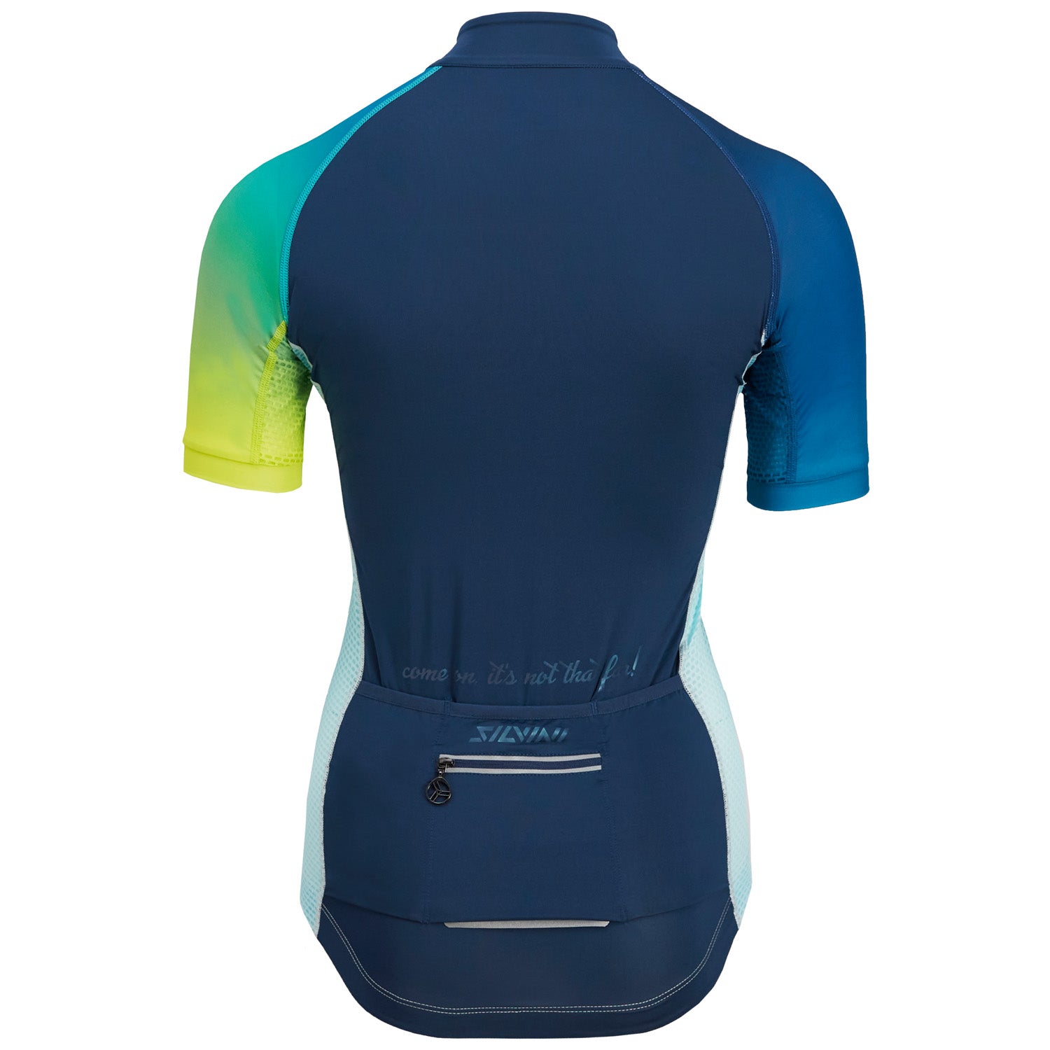 Women’s slim fit elastic Jersey with full front zipper, three pockets and reflective elements. It is made from a breathable material that wicks away sweat. The sleeves have elastic hems.